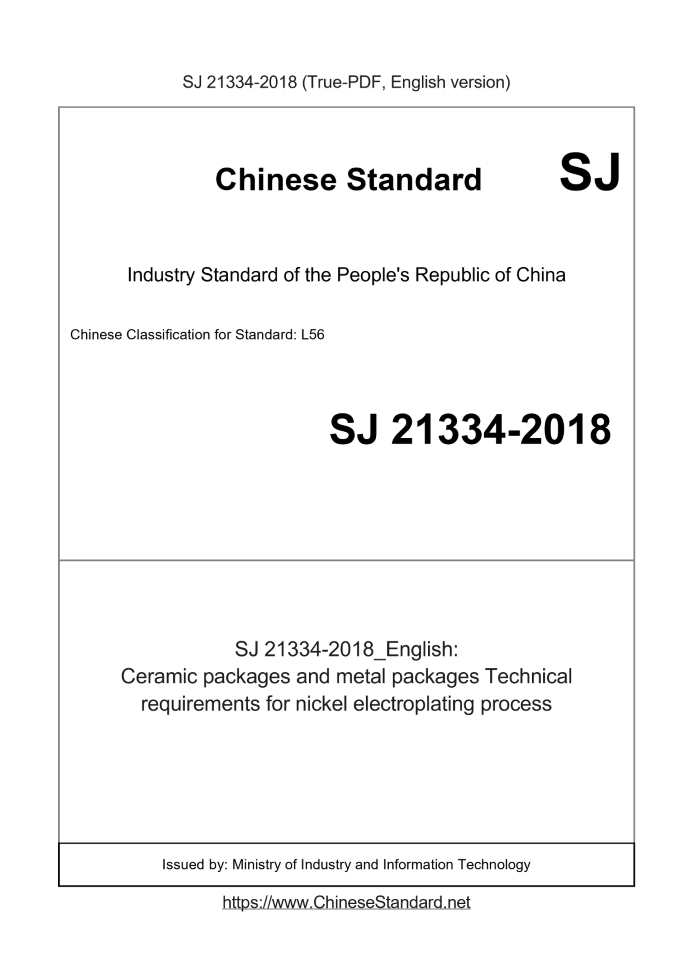 Delivery: <= 4 days. True-PDF full-copy in English will be manually translated and delivered via email. SJ 21334-2018: Ceramic packages and metal packages Technical requirements for nickel electroplating process Status: Valid