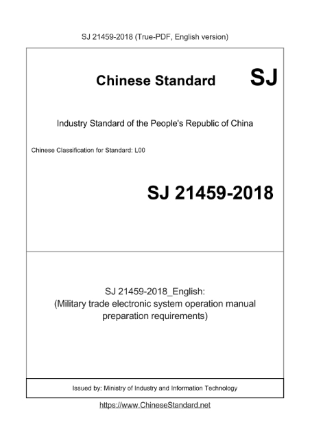 Delivery: <= 4 days. True-PDF full-copy in English will be manually translated and delivered via email. SJ 21459-2018: (Military trade electronic system operation manual preparation requirements) Status: Valid