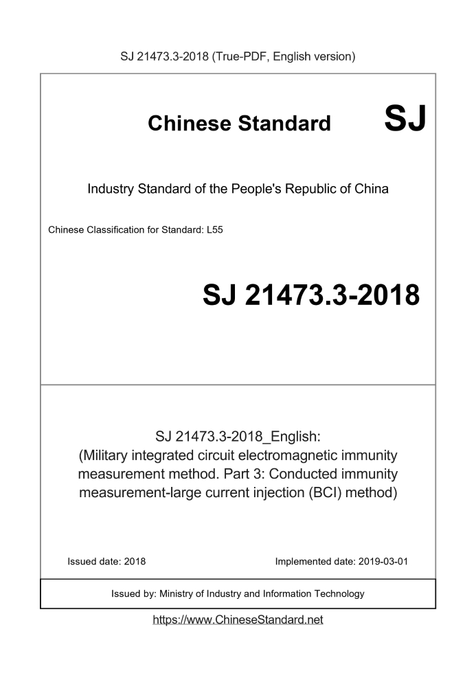 Delivery: <= 4 days. True-PDF full-copy in English will be manually translated and delivered via email. SJ 21473.3-2018: (Military integrated circuit electromagnetic immunity measurement method. Part 3: Conducted immunity measurement-large current injection (BCI) method)