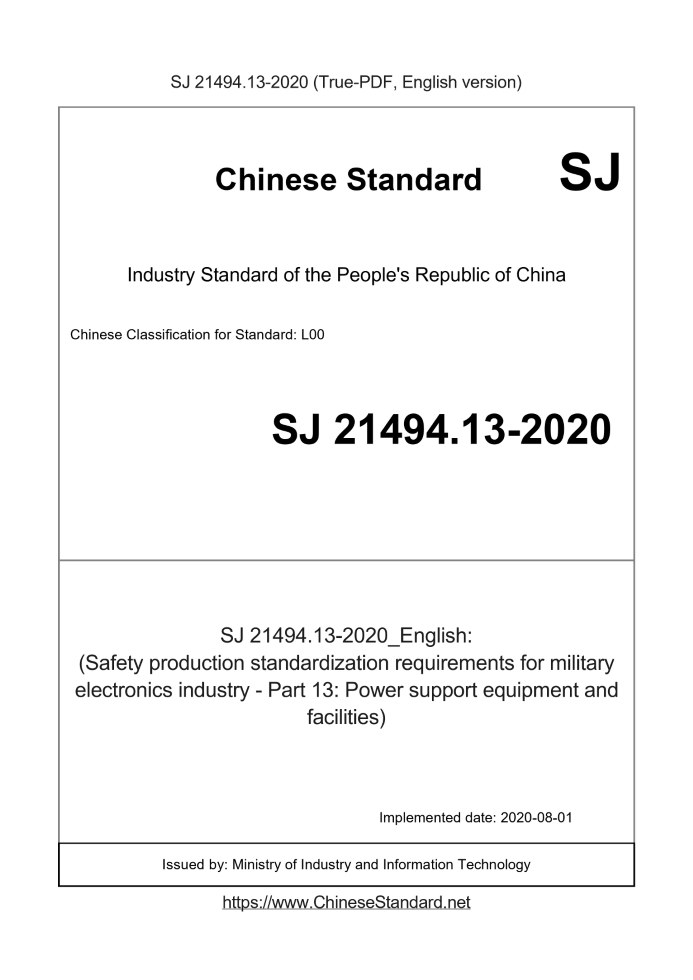 Basic dataStandard ID: SJ 21494.13-2020 (SJ21494.13-2020)Description (Translated English): (Safety production standardization requirements for military electronics industry - Part 13: Power support equipment and facilities) Sector / Industry: Electronics Industry Standard Classification of Chinese Standard: L00 Classification of International Standard: 31.020 Word Count Estimation: 102,116 Date of Implementation: 2020-08-01 Issuing agency(ies): Ministry of Industry and Information Technology Tips & Frequently Asked Questions:Question 1: How long will the true-PDF of SJ 21494.13-2020_English be delivered?Answer: Upon your order, we will start to translate SJ 21494.13-2020_English as soon as possible, and keep you informed of the progress. The lead time is typically 7 ~ 11 working days. The lengthier the document the longer the lead time.Question 2: Can I share the purchased PDF of SJ 21494.13-2020_English with my colleagues?Answer: Yes. The purchased PDF of SJ 21494.13-2020_English will be deemed to be sold to your employer/organization who actually pays for it, including your colleagues and your employer's intranet.Question 3: Does the price include tax/VAT?Answer: Yes. Our tax invoice, downloaded/delivered in 9 seconds, includes all tax/VAT and complies with 100+ countries' tax regulations (tax exempted in 100+ countries) -- See Avoidance of Double Taxation Agreements (DTAs): List of DTAs signed between Singapore and 100+ countriesQuestion 4: Do you accept my currency other than USD?Answer: Yes. If you need your currency to be printed on the invoice, please write an email to Sales@ChineseStandard.net. In 2 working-hours, we will create a special link for you to pay in any currencies. Otherwise, follow the normal steps: Add to Cart -- Checkout -- Select your currency to pay. |