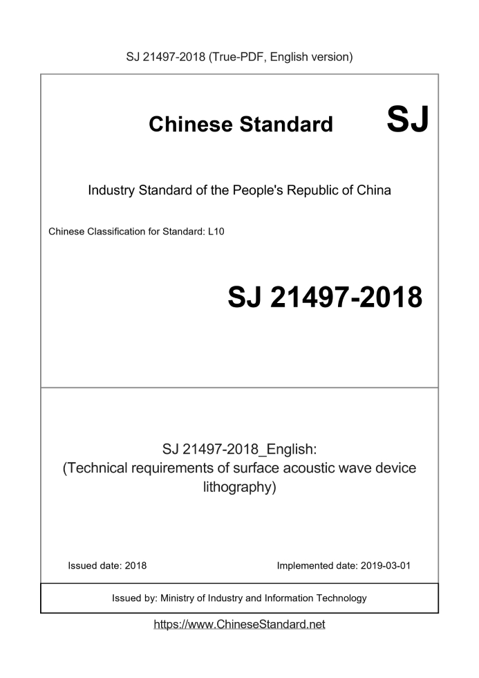 Delivery: <= 3 days. True-PDF full-copy in English will be manually translated and delivered via email. SJ 21497-2018: (Technical requirements of surface acoustic wave device lithography)