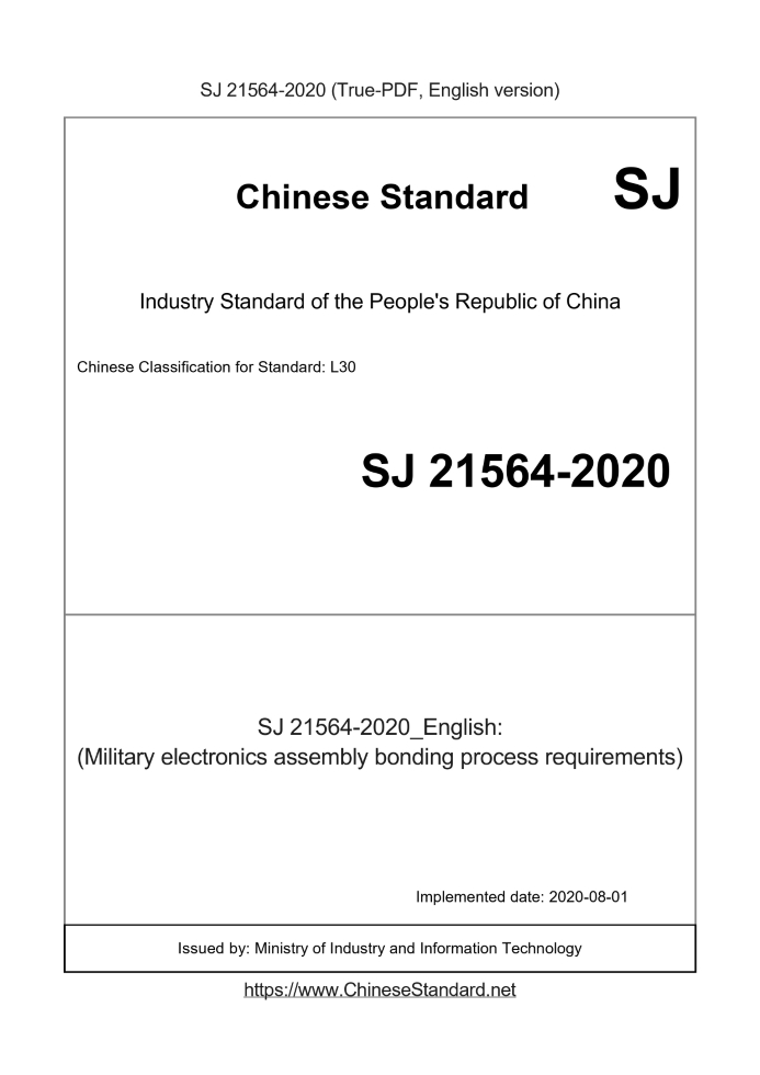 Delivery: <= 3 days. True-PDF full-copy in English will be manually translated and delivered via email. SJ 21564-2020: (Military electronics assembly bonding process requirements)