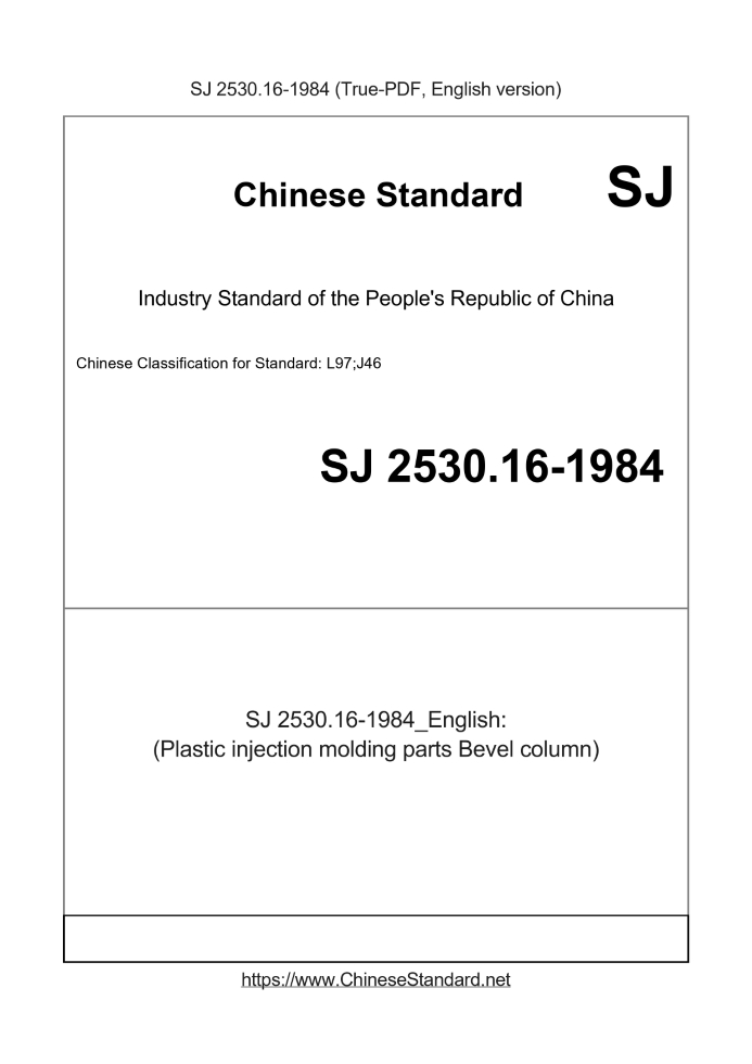 Delivery: <= 2 days. True-PDF full-copy in English will be manually translated and delivered via email. SJ 2530.16-1984: (Plastic injection molding parts Bevel column) Status: Obsolete