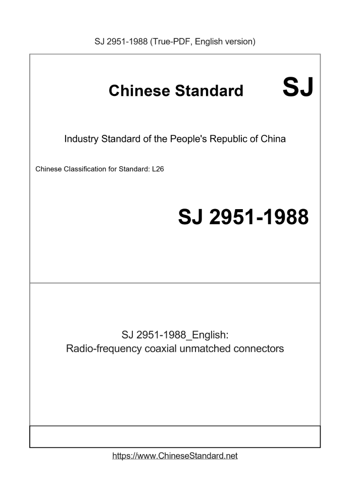 Delivery: <= 4 days. True-PDF full-copy in English will be manually translated and delivered via email. SJ 2951-1988: Radio-frequency coaxial unmatched connectors Status: Obsolete