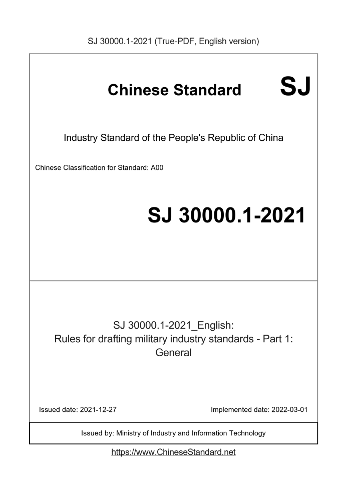 Delivery: <= 4 days. True-PDF full-copy in English will be manually translated and delivered via email. SJ 30000.1-2021: Rules for drafting military industry standards - Part 1: General Status: Valid