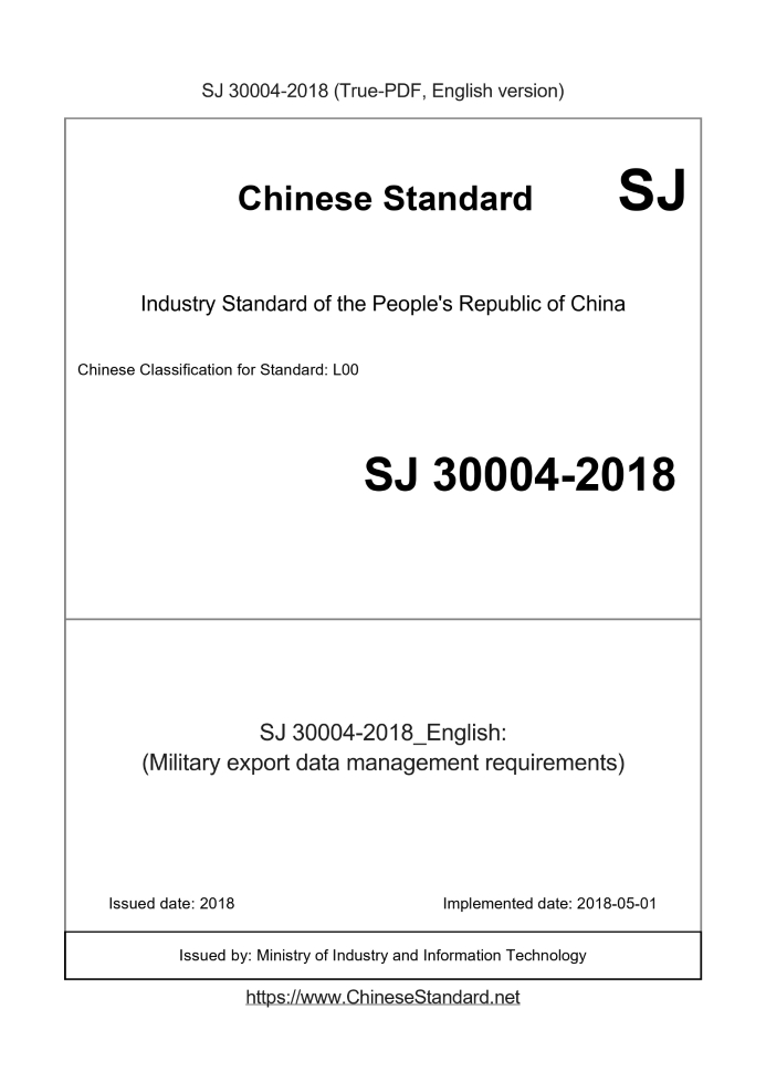 Delivery: <= 3 days. True-PDF full-copy in English will be manually translated and delivered via email. SJ 30004-2018: (Military export data management requirements)