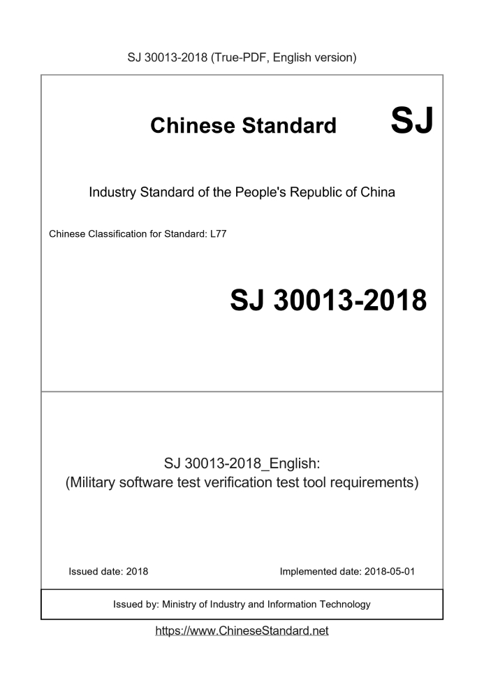 Delivery: <= 3 days. True-PDF full-copy in English will be manually translated and delivered via email. SJ 30013-2018: (Military software test verification test tool requirements)