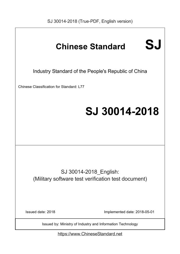 Delivery: <= 5 days. True-PDF full-copy in English will be manually translated and delivered via email. SJ 30014-2018: (Military software test verification test document)