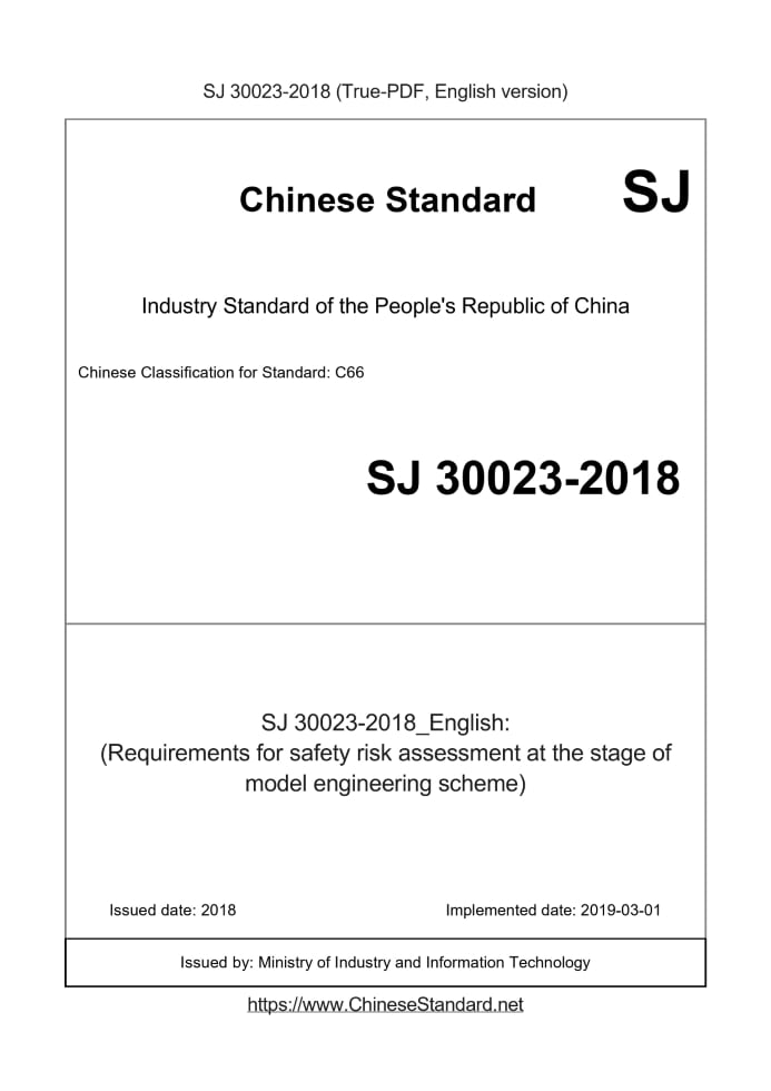 Delivery: <= 3 days. True-PDF full-copy in English will be manually translated and delivered via email. SJ 30023-2018: (Requirements for safety risk assessment at the stage of model engineering scheme)