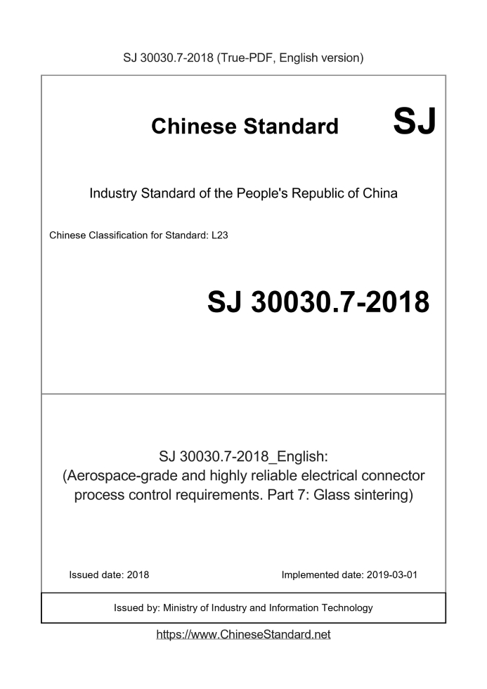 Delivery: <= 3 days. True-PDF full-copy in English will be manually translated and delivered via email. SJ 30030.7-2018: (Aerospace-grade and highly reliable electrical connector process control requirements. Part 7: Glass sintering)