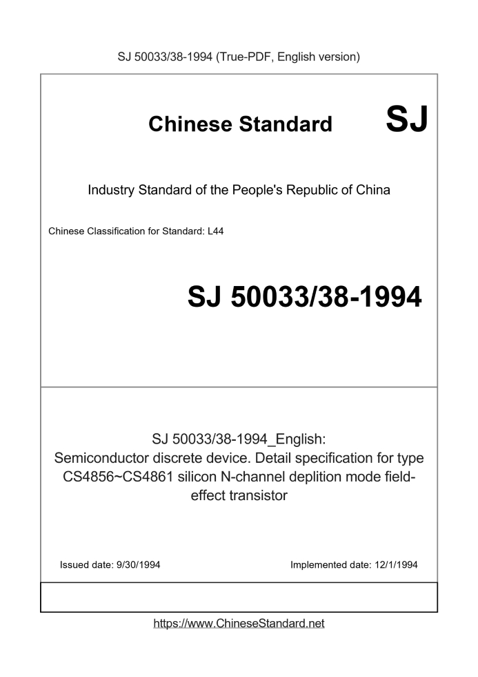 | Description (Translated English) | Semiconductor discrete device. Detail specification for type CS4856~CS4861 silicon N-channel deplition mode field-effect transistor |