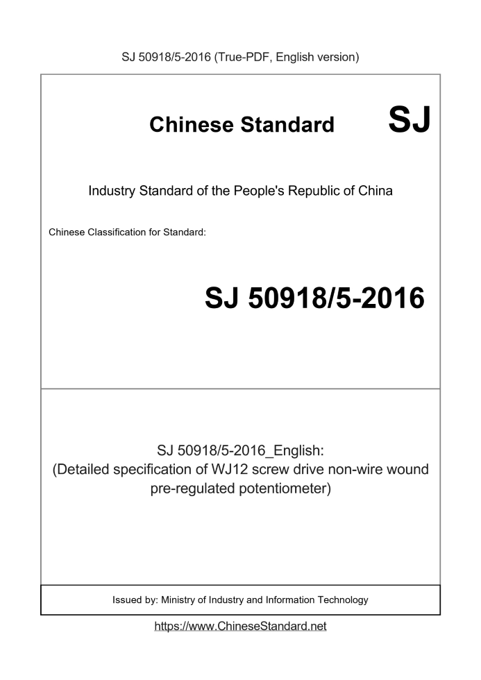 Delivery: <= 3 days. True-PDF full-copy in English will be manually translated and delivered via email. SJ 509185-2016: (Detailed specification of WJ12 screw drive non-wire wound pre-regulated potentiometer) Status: Valid