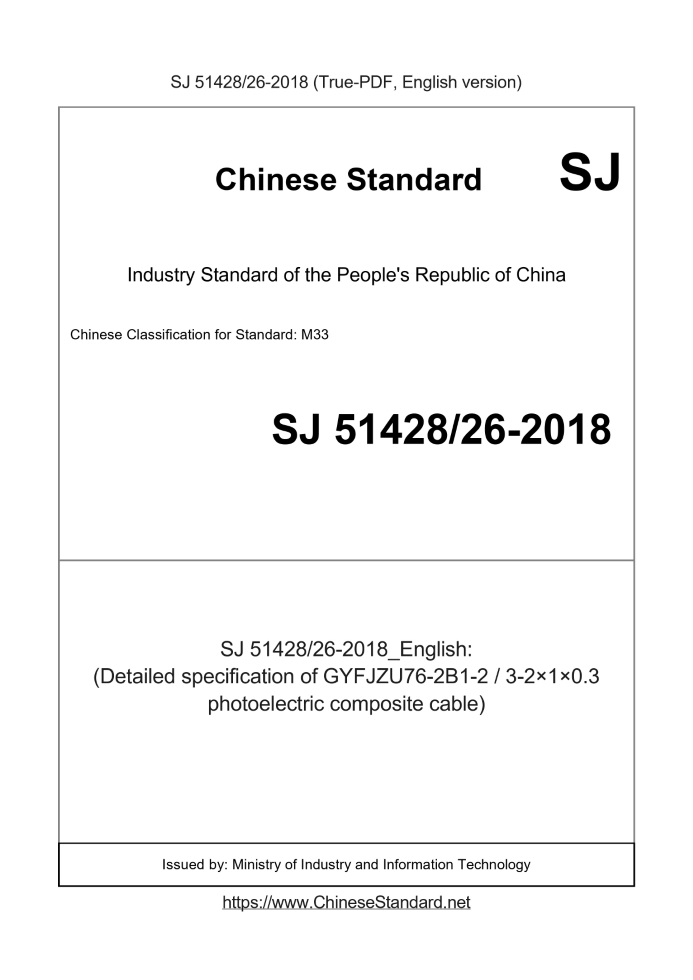 Delivery: <= 4 days. True-PDF full-copy in English will be manually translated and delivered via email. SJ 5142826-2018: (Detailed specification of GYFJZU76-2B1-2 / 3-2×1×0.3 photoelectric composite cable) Status: Valid