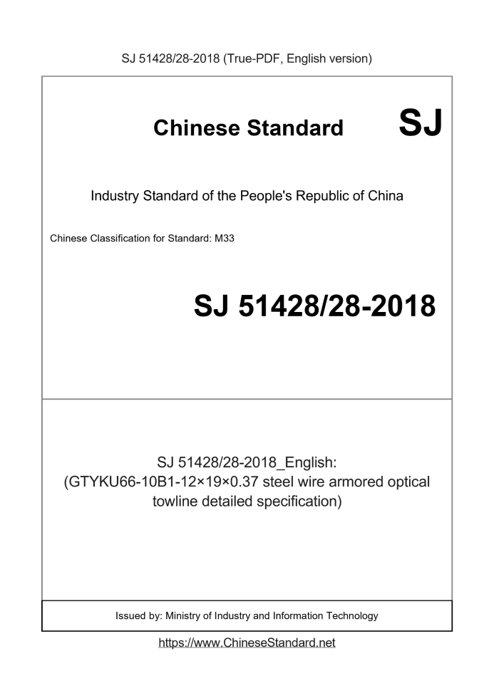Delivery: <= 4 days. True-PDF full-copy in English will be manually translated and delivered via email. SJ 5142828-2018: (GTYKU66-10B1-12×19×0.37 steel wire armored optical towline detailed specification) Status: Valid