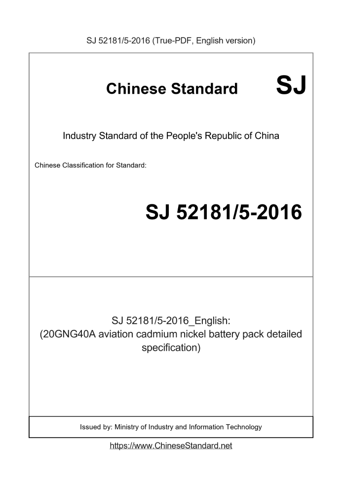 Delivery: <= 4 days. True-PDF full-copy in English will be manually translated and delivered via email. SJ 521815-2016: (20GNG40A aviation cadmium nickel battery pack detailed specification) Status: Valid