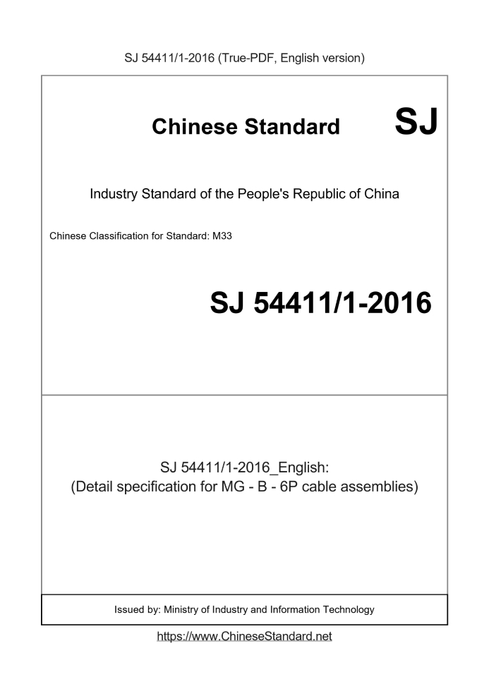 Delivery: <= 4 days. True-PDF full-copy in English will be manually translated and delivered via email. SJ 544111-2016: (Detail specification for MG - B - 6P cable assemblies) Status: Valid