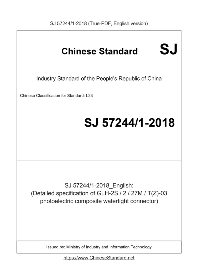 Delivery: <= 4 days. True-PDF full-copy in English will be manually translated and delivered via email. SJ 572441-2018: (Detailed specification of GLH-2S / 2 / 27M / T(Z)-03 photoelectric composite watertight connector) Status: Valid