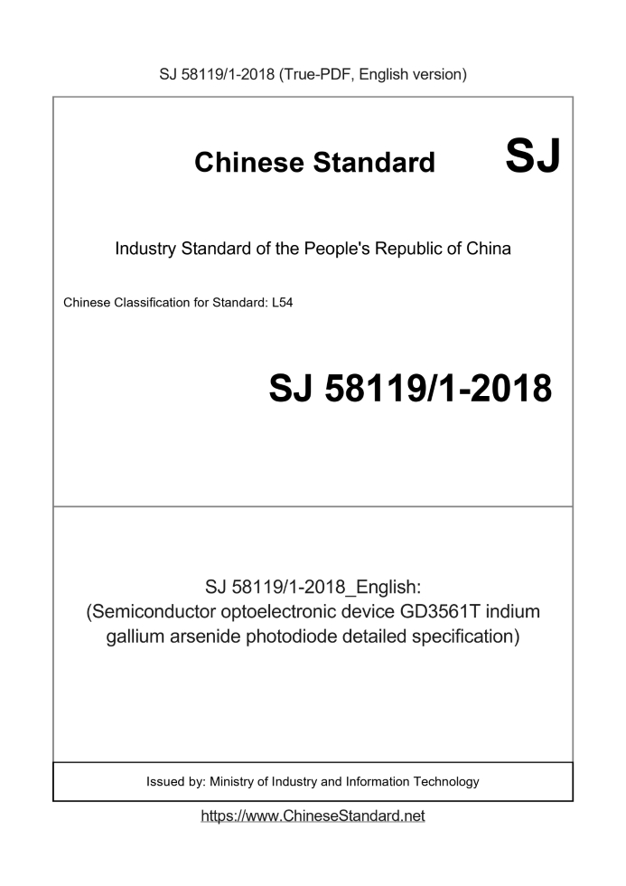 Delivery: <= 4 days. True-PDF full-copy in English will be manually translated and delivered via email. SJ 581191-2018: (Semiconductor optoelectronic device GD3561T indium gallium arsenide photodiode detailed specification) Status: Valid