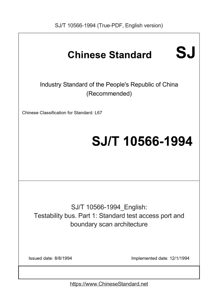 | SJ/T 10566-1994 English PDFUS$2849.00 ยท In stock Delivery: <= 13 days. True-PDF full-copy in English will be manually translated and delivered via email. SJ/T 10566-1994: Testability bus. Part 1: Standard test access port and boundary scan architecture