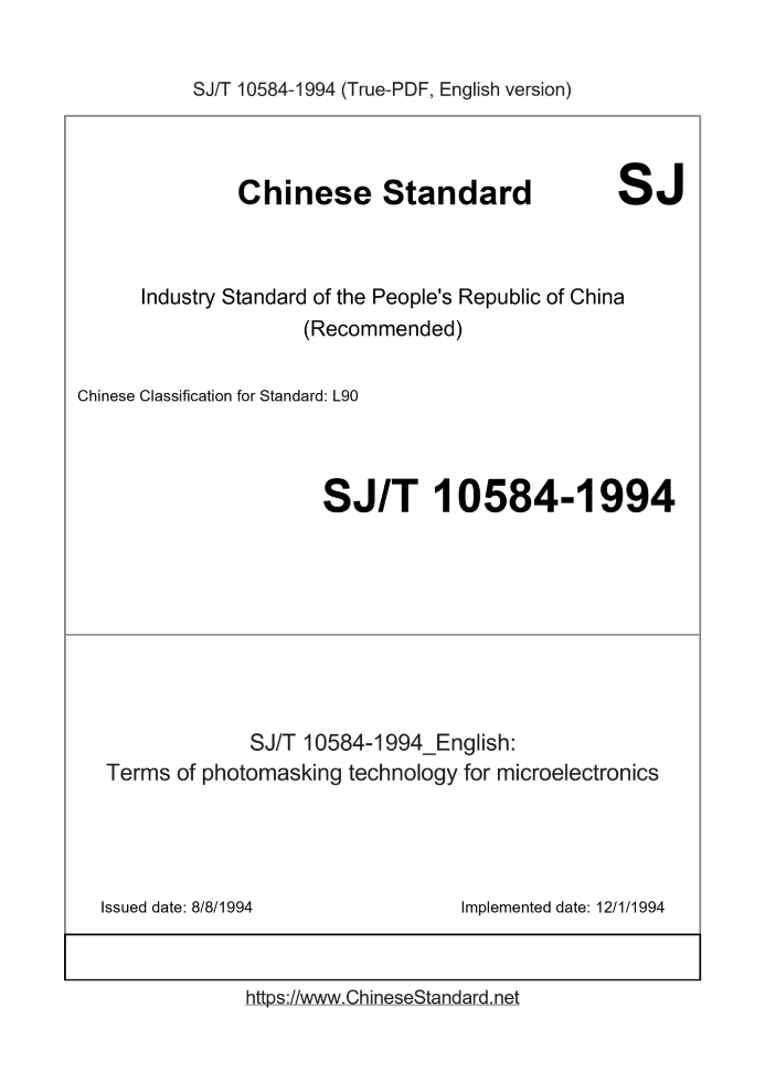 | SJ/T 10584-1994 English PDFUS$959.00 ยท In stock Delivery: <= 5 days. True-PDF full-copy in English will be manually translated and delivered via email. SJ/T 10584-1994: Terms of photomasking technology for microelectronics