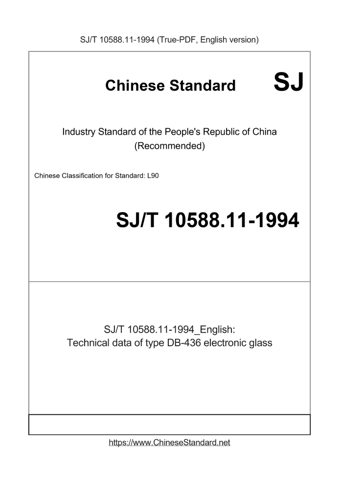 | SJ/T 10588.11-1994 English PDFUS$199.00 ยท In stock Delivery: <= 2 days. True-PDF full-copy in English will be manually translated and delivered via email. SJ/T 10588.11-1994: Technical data of type DB-436 electronic glass Status: Obsolete