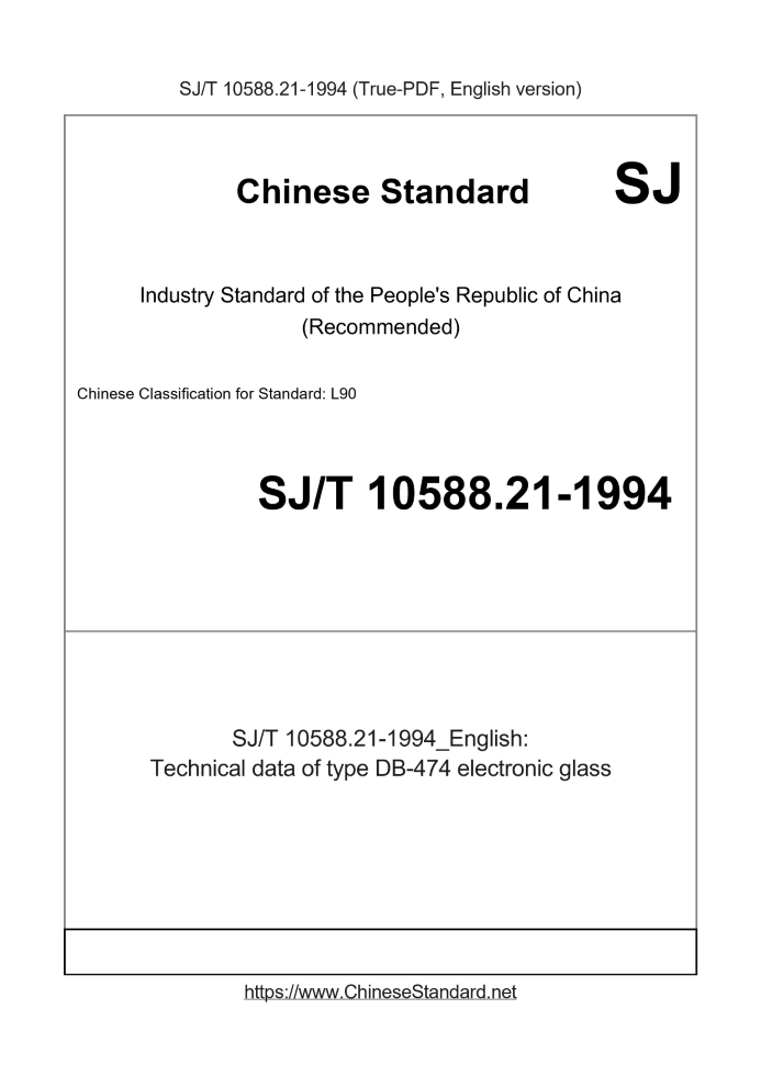 | SJ/T 10588.21-1994 English PDFUS$199.00 ยท In stock Delivery: <= 2 days. True-PDF full-copy in English will be manually translated and delivered via email. SJ/T 10588.21-1994: Technical data of type DB-474 electronic glass Status: Obsolete