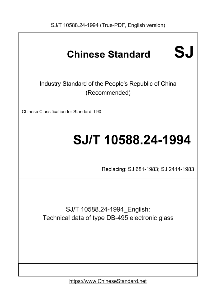| SJ/T 10588.24-1994 English PDFUS$199.00 ยท In stock Delivery: <= 2 days. True-PDF full-copy in English will be manually translated and delivered via email. SJ/T 10588.24-1994: Technical data of type DB-495 electronic glass Status: Obsolete