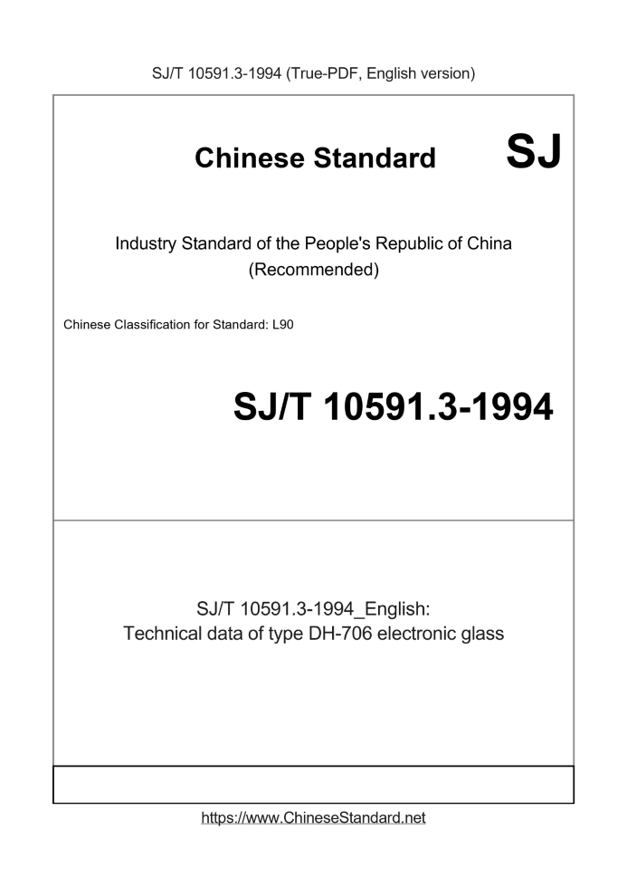 | SJ/T 10591.3-1994 English PDFUS$199.00 ยท In stock Delivery: <= 2 days. True-PDF full-copy in English will be manually translated and delivered via email. SJ/T 10591.3-1994: Technical data of type DH-706 electronic glass Status: Obsolete