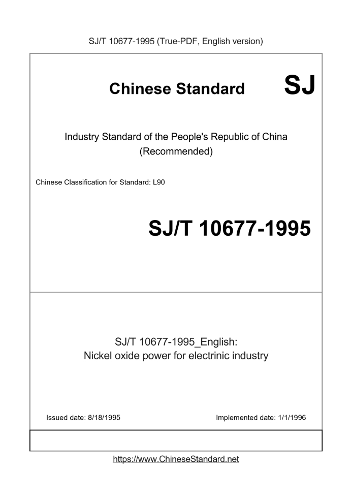Delivery: <= 2 days. True-PDF full-copy in English will be manually translated and delivered via email. SJ/T 10677-1995: Nickel oxide power for electrinic industry