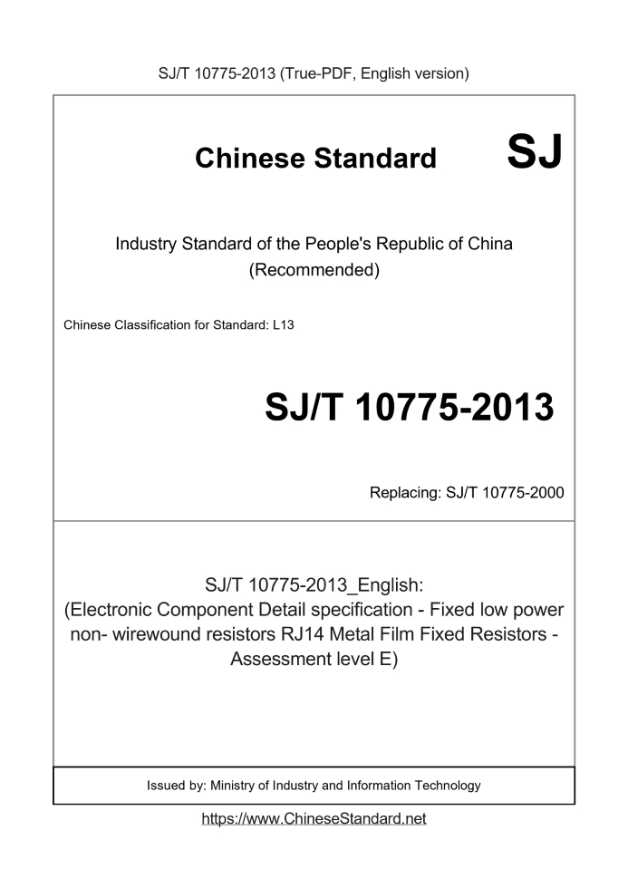 SJ/T 10775-2013: (Electronic Component Detail specification - Fixed low power non- wirewound resistors RJ14 Metal Film Fixed Resistors - Assessment level E)