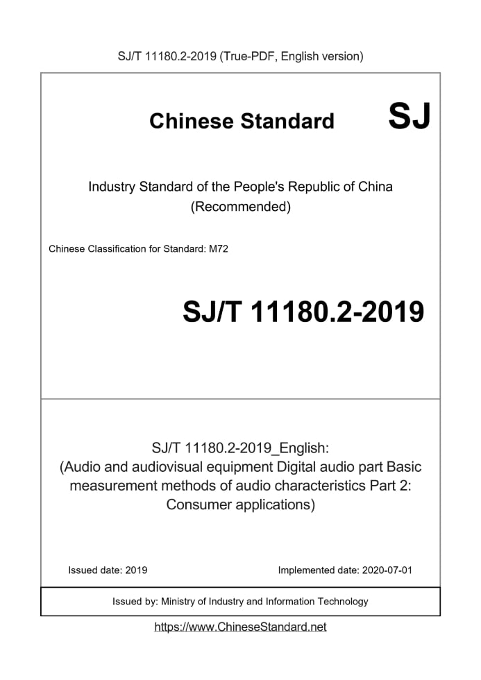 Delivery: <= 5 days. True-PDF full-copy in English will be manually translated and delivered via email. SJ/T 11180.2-2019: (Audio and audiovisual equipment Digital audio part Basic measurement methods of audio characteristics Part 2: Consumer applications) Status: Valid