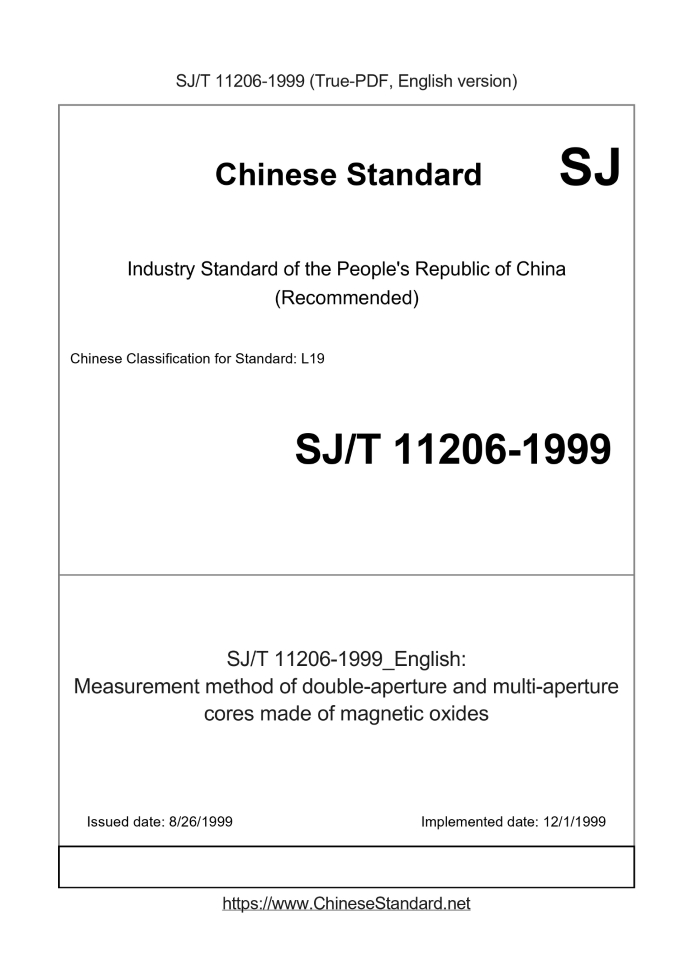 US$179.00 · In stock · Download in 9 secondsSJ/T 11206-1999: Measurement method of double-aperture and multi-aperture cores made of magnetic oxides