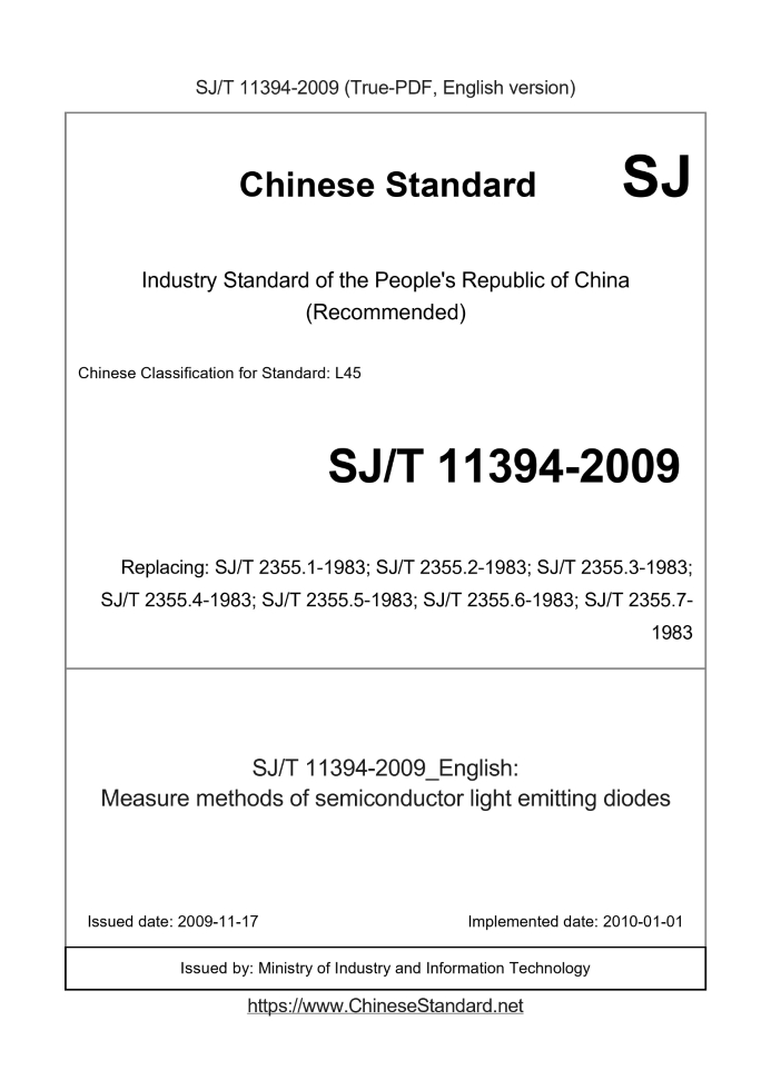 Delivery: <= 6 days. True-PDF full-copy in English will be manually translated and delivered via email. SJ/T 11394-2009: Measure methods of semiconductor light emitting diodes Status: Valid