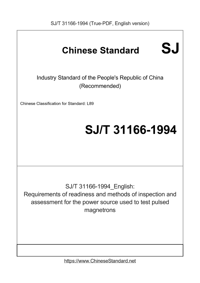 Delivery: <= 2 days. True-PDF full-copy in English will be manually translated and delivered via email. SJ/T 31166-1994: Requirements of readiness and methods of inspection and assessment for the power source used to test pulsed magnetrons Status: Obsolete