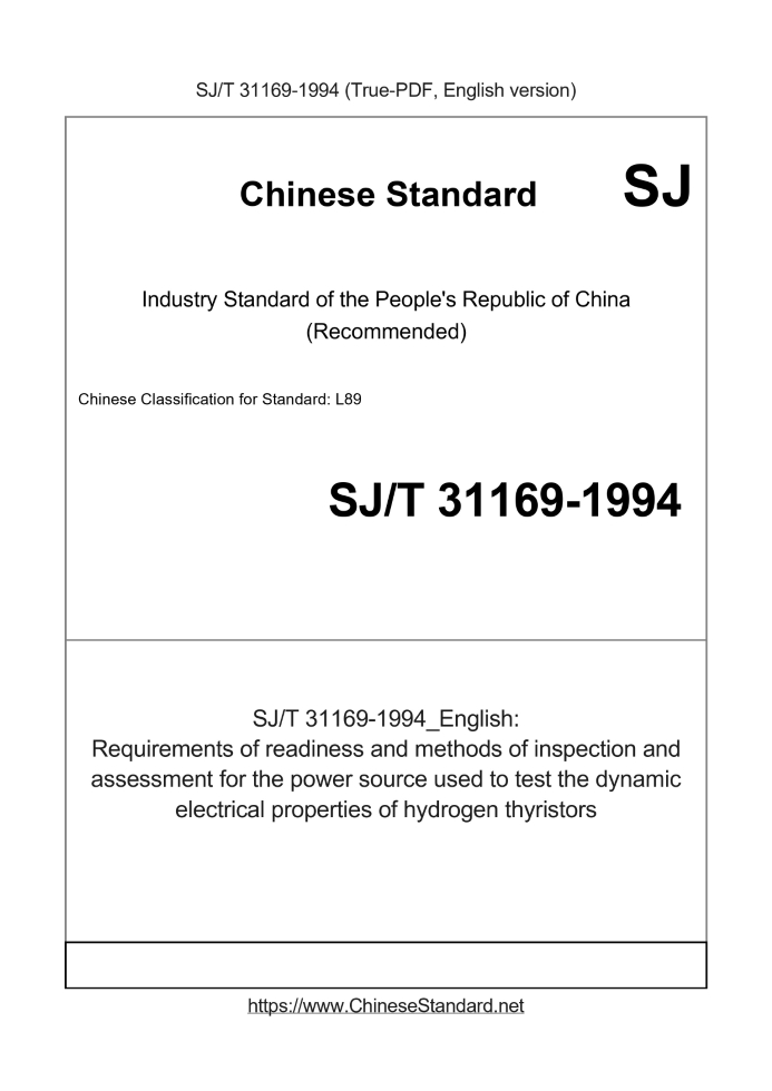 Delivery: <= 2 days. True-PDF full-copy in English will be manually translated and delivered via email. SJ/T 31169-1994: Requirements of readiness and methods of inspection and assessment for the power source used to test the dynamic electrical properties of hydrogen thyristors Status: Obsolete