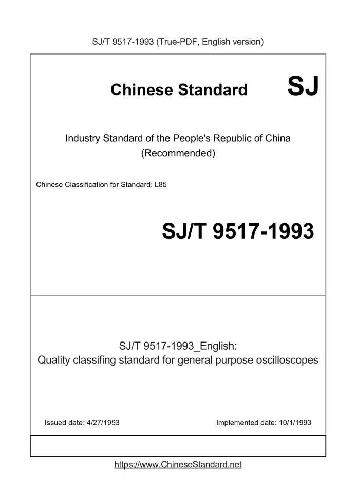 Delivery: <= 2 days. True-PDF full-copy in English will be manually translated and delivered via email. SJ/T 9517-1993: Quality classifing standard for general purpose oscilloscopes Status: Obsolete