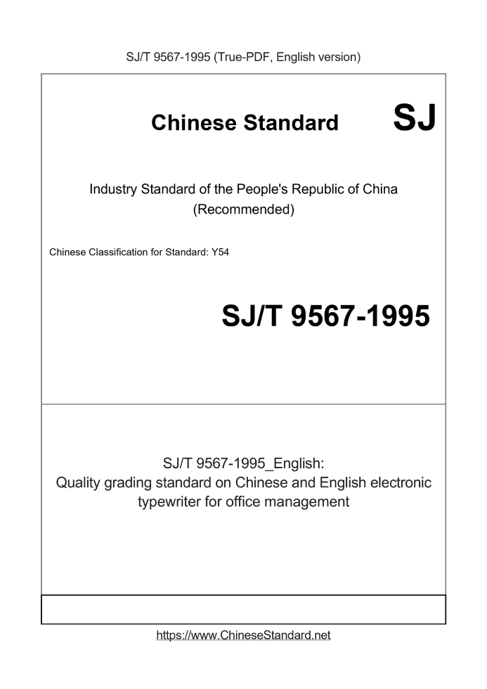 Delivery: <= 2 days. True-PDF full-copy in English will be manually translated and delivered via email. SJ/T 9567-1995: Quality grading standard on Chinese and English electronic typewriter for office management Status: Obsolete