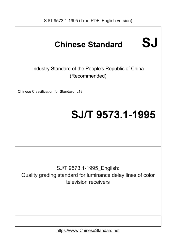 Delivery: <= 2 days. True-PDF full-copy in English will be manually translated and delivered via email. SJ/T 9573.1-1995: Quality grading standard for luminance delay lines of color television receivers Status: Obsolete
