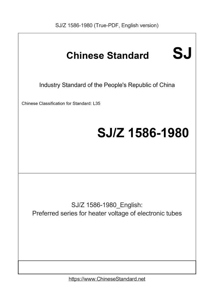Delivery: <= 2 days. True-PDF full-copy in English will be manually translated and delivered via email. SJZ1586-1980: Preferred series for heater voltage of electronic tubes Status: Obsolete