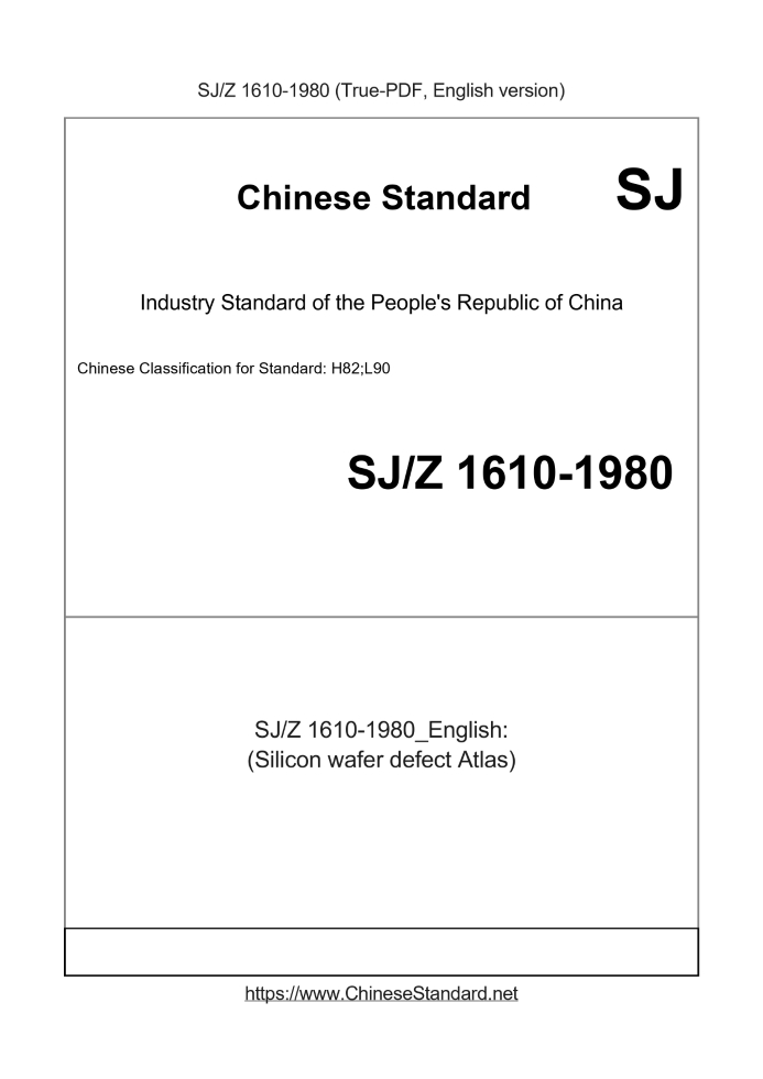 Delivery: <= 4 days. True-PDF full-copy in English will be manually translated and delivered via email. SJZ1610-1980: (Silicon wafer defect Atlas) Status: Obsolete