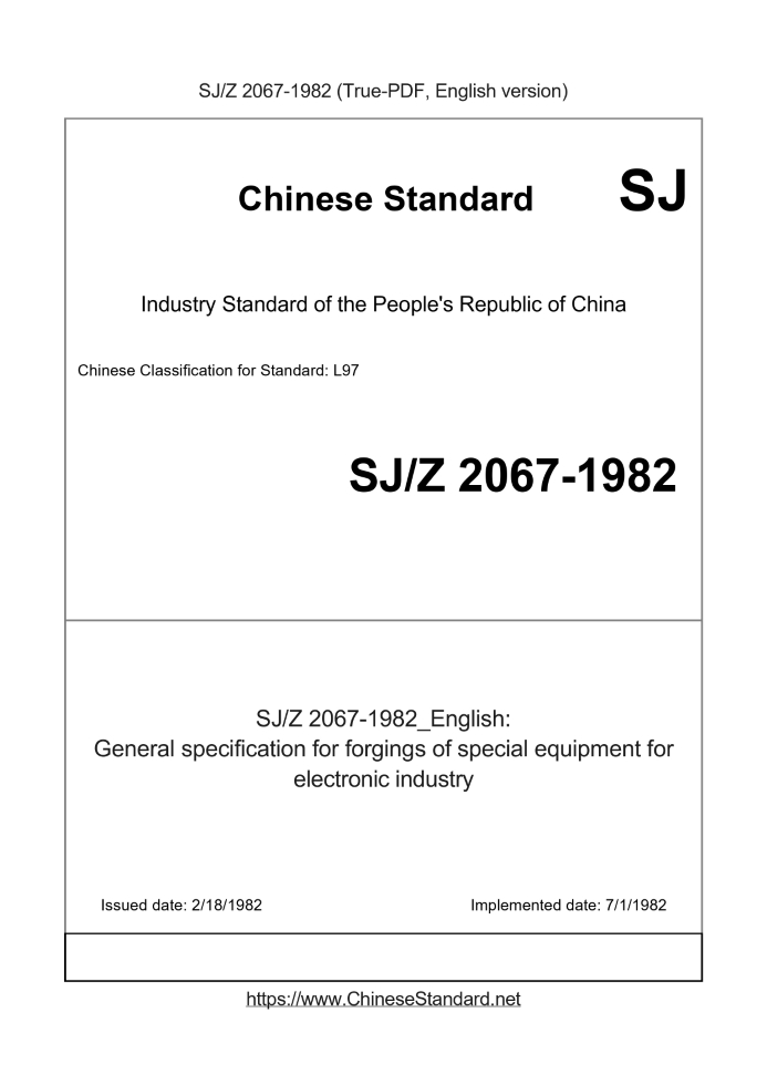 Delivery: <= 2 days. True-PDF full-copy in English will be manually translated and delivered via email. SJZ2067-1982: General specification for forgings of special equipment for electronic industry