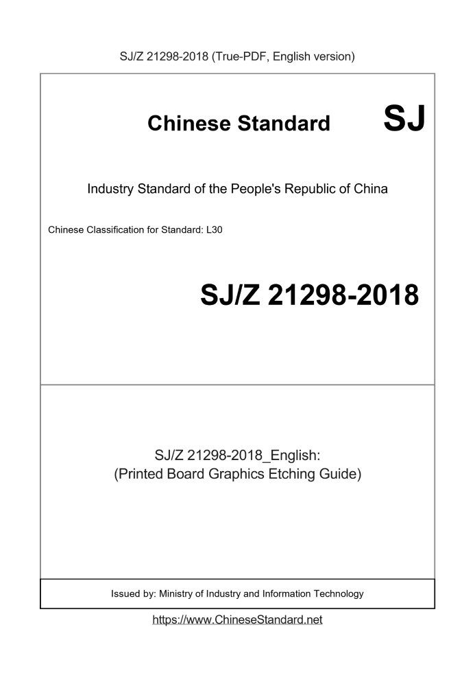 Delivery: <= 3 days. True-PDF full-copy in English will be manually translated and delivered via email. SJZ21298-2018: (Printed Board Graphics Etching Guide) Status: Valid