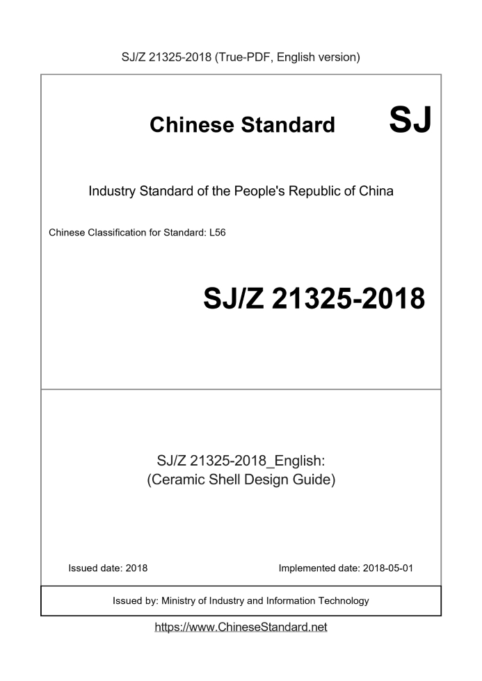 Delivery: <= 5 days. True-PDF full-copy in English will be manually translated and delivered via email. SJZ21325-2018: (Ceramic Shell Design Guide)
