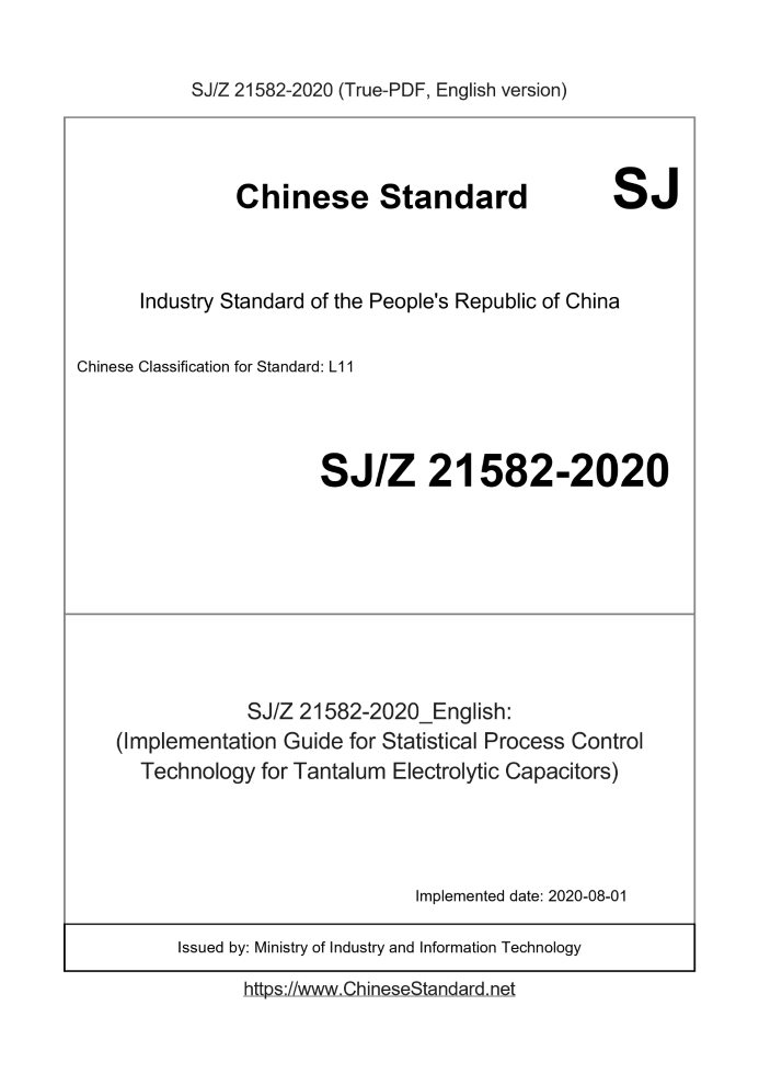 Delivery: <= 8 days. True-PDF full-copy in English will be manually translated and delivered via email. SJZ21582-2020: (Implementation Guide for Statistical Process Control Technology for Tantalum Electrolytic Capacitors) Status: Valid