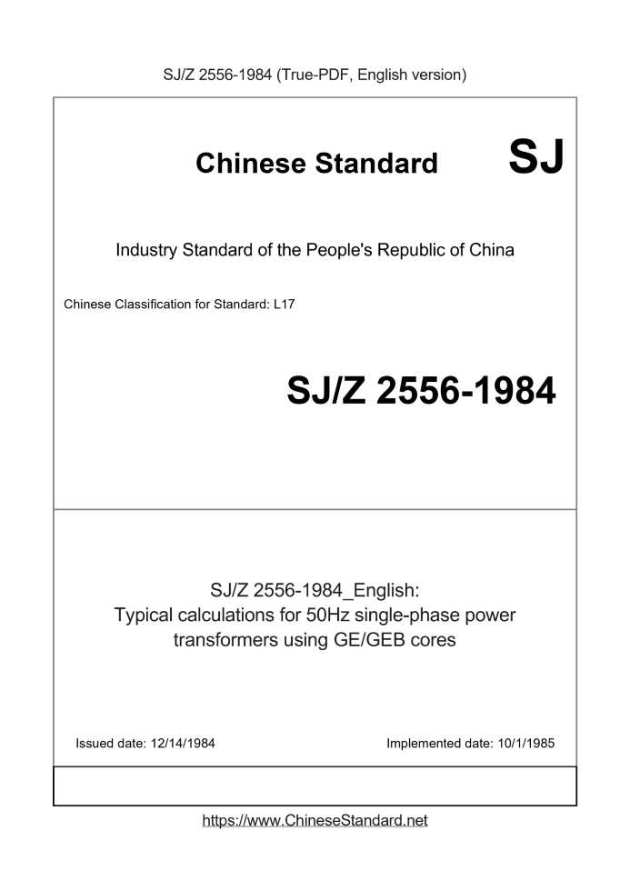 Delivery: <= 5 days. True-PDF full-copy in English will be manually translated and delivered via email. SJZ2556-1984: Typical calculations for 50Hz single-phase power transformers using GE/GEB cores
