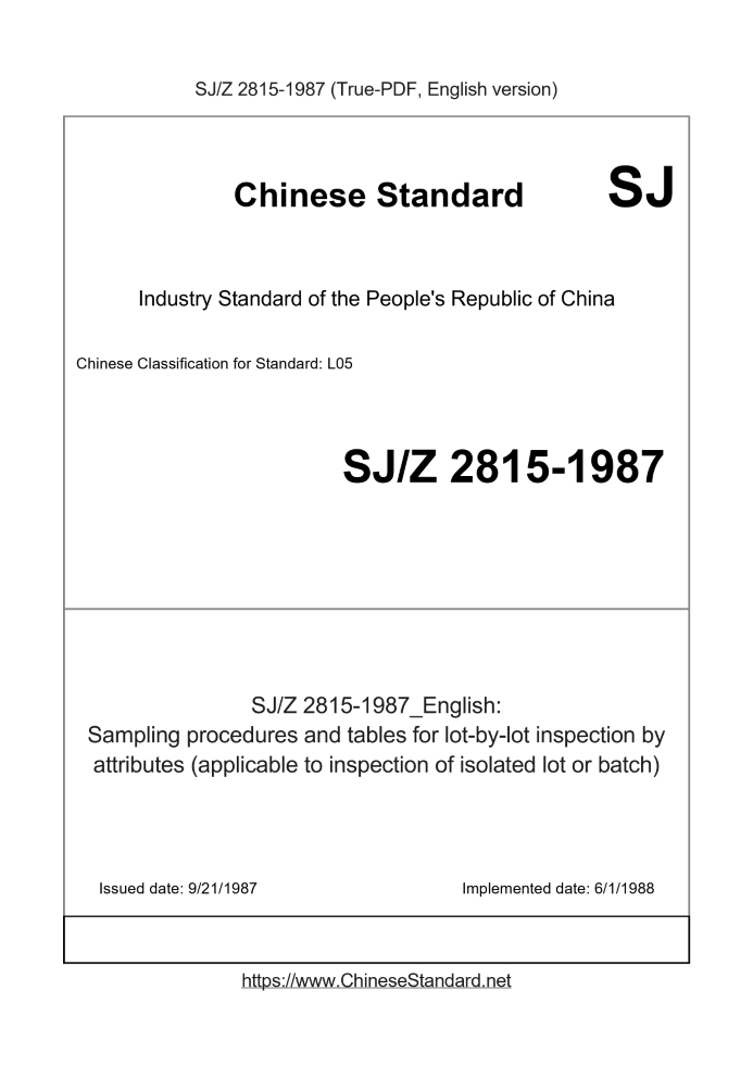 Basic dataStandard ID: SJ/Z 2815-1987 (SJ/Z2815-1987)Description (Translated English): Sampling procedures and tables for lot-by-lot inspection by attributes (applicable to inspection of isolated lot or batch) Sector / Industry: Electronics Industry Standard Classification of Chinese Standard: L05 Word Count Estimation: 88,864 Date of Issue: 9/21/1987 Date of Implementation: 6/1/1988 Summary: This standard specifies the quality to the limit (expressed in per hundred units per number of nonconforming product or product failure several hundred units) as quality indicators of sampling programs and sampling procedures. Tips & Frequently Asked Questions:Question 1: How long will the true-PDF of SJZ2815-1987_English be delivered?Answer: Upon your order, we will start to translate SJZ2815-1987_English as soon as possible, and keep you informed of the progress. The lead time is typically 9 ~ 13 working days. The lengthier the document the longer the lead time.Question 2: Can I share the purchased PDF of SJZ2815-1987_English with my colleagues?Answer: Yes. The purchased PDF of SJZ2815-1987_English will be deemed to be sold to your employer/organization who actually pays for it, including your colleagues and your employer's intranet.Question 3: Does the price include tax/VAT?Answer: Yes. Our tax invoice, downloaded/delivered in 9 seconds, includes all tax/VAT and complies with 100+ countries' tax regulations (tax exempted in 100+ countries) -- See Avoidance of Double Taxation Agreements (DTAs): List of DTAs signed between Singapore and 100+ countriesQuestion 4: Do you accept my currency other than USD?Answer: Yes. If you need your currency to be printed on the invoice, please write an email to Sales@ChineseStandard.net. In 2 working-hours, we will create a special link for you to pay in any currencies. Otherwise, follow the normal steps: Add to Cart -- Checkout -- Select your currency to pay. |