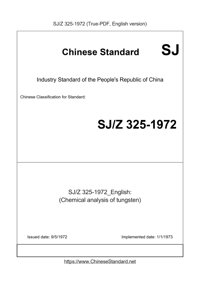 Delivery: <= 3 days. True-PDF full-copy in English will be manually translated and delivered via email. SJZ325-1972: (Chemical analysis of tungsten) Status: Obsolete