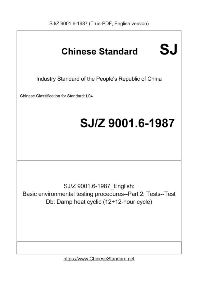 Basic dataStandard ID: SJ/Z 9001.6-1987 (SJ/Z9001.6-1987)Description (Translated English): Basic environmental testing procedures--Part 2: Tests--Test Db: Damp heat cyclic (12+12-hour cycle) Sector / Industry: Electronics Industry Standard Classification of Chinese Standard: L04 Tips & Frequently Asked Questions:Question 1: How long will the true-PDF of SJZ9001.6-1987_English be delivered?Answer: Upon your order, we will start to translate SJZ9001.6-1987_English as soon as possible, and keep you informed of the progress. The lead time is typically 1 ~ 3 working days. The lengthier the document the longer the lead time.Question 2: Can I share the purchased PDF of SJZ9001.6-1987_English with my colleagues?Answer: Yes. The purchased PDF of SJZ9001.6-1987_English will be deemed to be sold to your employer/organization who actually pays for it, including your colleagues and your employer's intranet.Question 3: Does the price include tax/VAT?Answer: Yes. Our tax invoice, downloaded/delivered in 9 seconds, includes all tax/VAT and complies with 100+ countries' tax regulations (tax exempted in 100+ countries) -- See Avoidance of Double Taxation Agreements (DTAs): List of DTAs signed between Singapore and 100+ countriesQuestion 4: Do you accept my currency other than USD?Answer: Yes. If you need your currency to be printed on the invoice, please write an email to Sales@ChineseStandard.net. In 2 working-hours, we will create a special link for you to pay in any currencies. Otherwise, follow the normal steps: Add to Cart -- Checkout -- Select your currency to pay. |