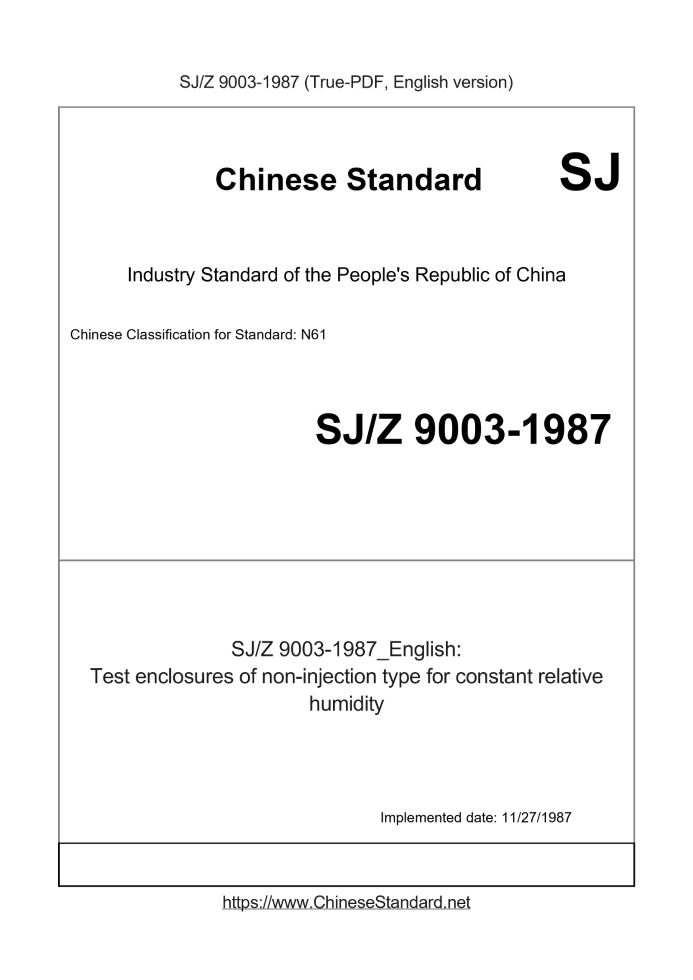 Delivery: <= 3 days. True-PDF full-copy in English will be manually translated and delivered via email. SJZ9003-1987: Test enclosures of non-injection type for constant relative humidity