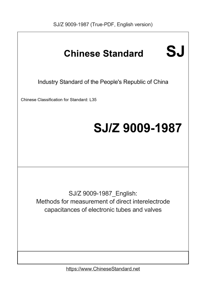 Delivery: <= 4 days. True-PDF full-copy in English will be manually translated and delivered via email. SJZ9009-1987: Methods for measurement of direct interelectrode capacitances of electronic tubes and valves Status: Obsolete